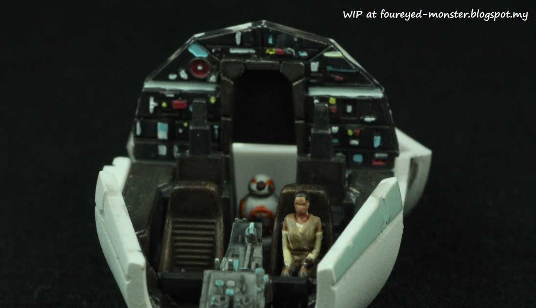 At this stage, no weathering has been done yet. Weathering will most likely be applied only after the cockpit area is attached to the main hull. At least that's the plan for now. Also before any of the above steps were attempted, I tested them out on unwanted parts. I highly recommend you do this especially to see how your area's weather conditions affect the spray paints (opaque or clear). In the hot and humid conditions I work in, I usually spraying from a distance of less than one feet (roughly 30 cm) for the best results. Actual distance varies from between six to 10 inches (~ 15 to 25 cm) depending on the pressure I put on the nozzle. Up next will be the assembly of the hull plating over the cockpit interior. Only then will I know if the figures and interior will still be visible to the naked eye.